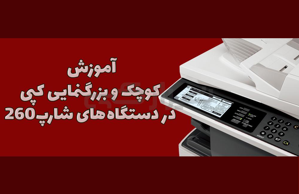 یکی از امکاناتی که تمامی دستگاههای فتوکپی شارپ قابلیت انجام آن را دارند کوچک و یا بزرگنمایی اسناد میباشد. به این معنی که میتوانیم کاغذها را کوچکتر و یا بزرگتر از سایز خودشان کپی بگیریم. برای هر بار انجام کوچکنمایی تا 25 درصد سایز اصلی و برای بزرگنمایی تا 400 درصد قابل انجام میباشد. همچنین درصدهایی هم بصورت پیشفرض تعریف گردیده که میتوانیم برای تغییر سایزهای استاندارد از آنها استفاده کنیم.