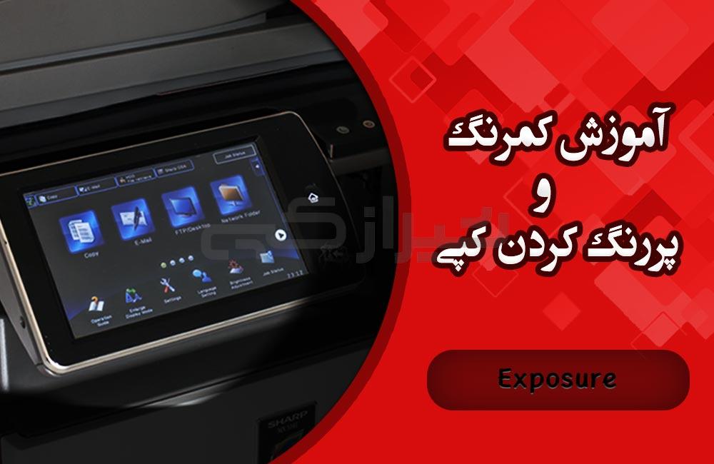 در بعضی موارد در هنگام گرفتن کپی ممکن است بدلیل کمرنگ بودن سندی که میخواهیم از روی آن کپی بگیریم و یا پایین بودن کیفیت چاپ دستگاه بدلیل ضعیف بودن مواد مصرفی نیاز به پررنگتر کردن کپی باشد. برای این منظور ابتدا قسمت Exposure را میفشاریم.